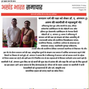 भेंट के दौरान सनातन धर्म की रक्षा, सांस्कृतिक मूल्यों के संरक्षण तथा समाज में धार्मिक जागरूकता को लेकर विस्तृत चर्चा हुई। डॉ. अंगप्पन ने बताया कि वे धर्म रक्षा के उद्देश्य से नियमित रूप से संत-महात्माओं से मार्गदर्शन लेते रहते हैं और समाज को सही दिशा देने के लिए निरंतर प्रयासरत हैं।