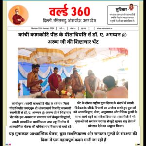 कांची कामकोटि पीठ के वर्तमान 70वें पीठाधिपति जगद्गुरु श्री शंकराचार्य विजयेंद्र सरस्वती स्वामीजी से डॉ. ए. अंगप्पन @ अरुण जी ने शिष्टाचार भेंट की। इस अवसर पर सनातन धर्म के मूल सिद्धांतों, उसकी सामाजिक प्रासंगिकता तथा राष्ट्र निर्माण में आध्यात्मिक चेतना की भूमिका पर विस्तार से चर्चा हुई।