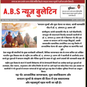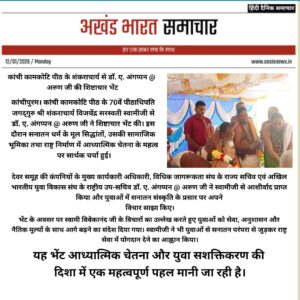 भेंट के दौरान राष्ट्रीय युवा दिवस के संदर्भ में स्वामी विवेकानंद जी के विचारों का उल्लेख करते हुए युवाओं को आत्मविश्वास, सेवा, अनुशासन और नैतिक मूल्यों के साथ आगे बढ़ने का संदेश दिया गया। स्वामीजी ने भी युवाओं को सनातन परंपरा से जुड़े रहकर राष्ट्र सेवा में योगदान देने का आह्वान किया।