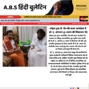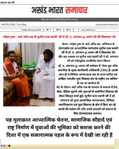 इस अवसर पर स्नेहम ट्रस्ट द्वारा किए जा रहे सामाजिक एवं आध्यात्मिक प्रयासों की भी सराहना की गई। दोनों महानुभावों ने समाज के सर्वांगीण विकास हेतु मिलकर कार्य करने की आवश्यकता पर बल दिया। यह भेंट सामाजिक सौहार्द, सेवा भावना और आध्यात्मिक चेतना को सुदृढ़ करने की दिशा में एक महत्वपूर्ण पहल मानी जा रही है।