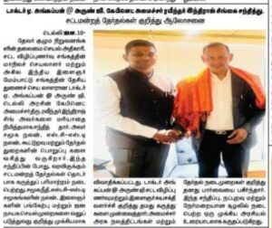10. डॉ. ए. अंगप्पन @ अरुण जी की कैबिनेट मंत्री रविंदर इंद्राज सिंह से भेंट, विधानसभा चुनावों पर चर्चा