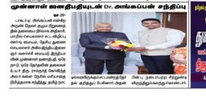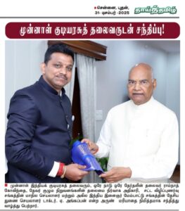 2. DR. A. Angappan @ Arun (CEO of Devar Group of Companies & State Secretary Legal Awareness Association & National Deputy Secretary- All India Youth Development Association) a courtesy meeting With Hon’ble Hon’ble Shri Ramnath Kovind ji, former President of India and