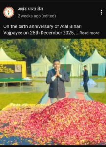4. On the birth anniversary of Atal Bihari Vajpayee on 25th December 2025, DR. A. Angappan @ Arun (CEO of Devar Group of Companies, State Secretary – Legal Awareness Association and National Deputy Secretary – All India Youth Development Association) paid floral tributes at the Samadhi of Atal Bihari Vajpayee ji