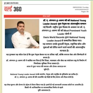 डॉ. ए. अंगप्पन @ अरुण जी को Oasis World Records द्वारा National Young Leader Award से सम्मानित किया गया 1