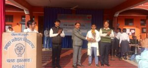 डॉ. एस. डी. लोखंडे JNV Chatra में कर्मचारी को सम्मानित करते हुए