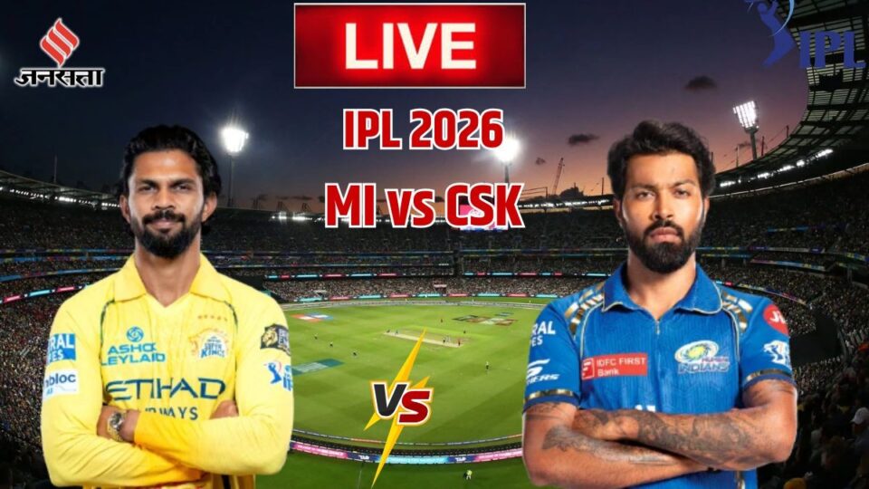 IPL 2026, CSK vs MI Cricket Match Live Scorecard: आईपीएल 2026 के 33वें मैच में मुंबई इंडियंस का सामना चेन्नई सुपर किंग्स के साथ वानखेड़े स्टेडियम, मुंबई में हो रहा है। इस मैच में मुंबई ने टॉस जीतकर पहले गेंदबाजी का फैसला किया। इस मुकाबले के लिए मुंबई ने अपनी प्लेइंग 11 में कोई बदलाव नहीं किया। रोहित शर्मा की इस मैच में वापसी नहीं हुई तो वहीं एमएस धोनी को भी मौका नहीं मिला। 11 साल में ऐसा पहली बार हुआ जब दोनों टीमें रोहित और धोनी के बिना मैदान पर उतरी है। सीएसके ने अपनी प्लेइंग इलेवन में मैथ्यू शॉर्ट की जगह प्रशांत वीर को शामिल किया।