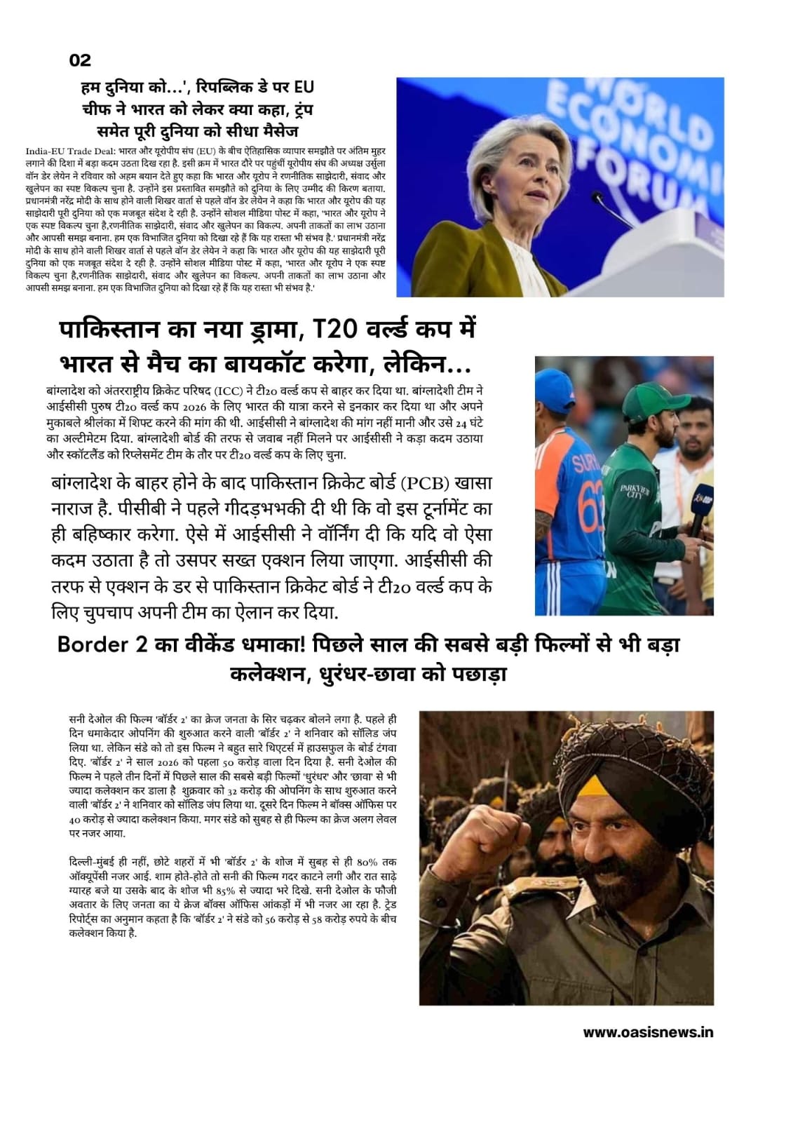 E Paperखेल जगतमनोरंजनलेटेस्ट न्यूजE- News Paper Page- 2oasisadminJanuary 26, 2026 by oasisadminJanuary 26, 2026021 ...
