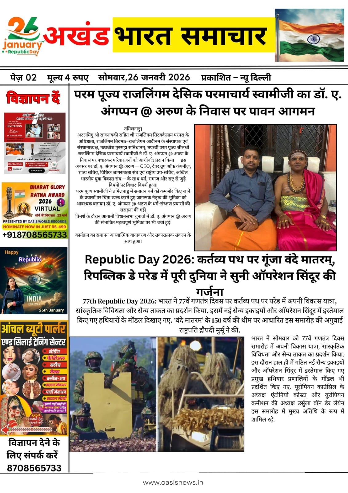 E Paperनेशनललेटेस्ट न्यूजE- News Paper Page- 1oasisadminJanuary 26, 2026 by oasisadminJanuary 26, 2026017 ...
